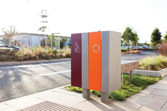 nanuk, NNK, litter bin, Woody, LWD, park bench, design: David Karasek, Radek Hegmon, France, Montevrian, Clos du Chene, centre commercial
