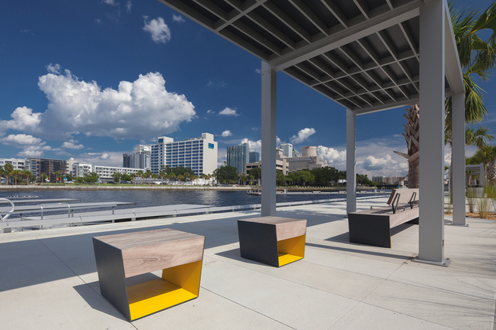 Struttura in acciaio zincato verniciato a polvere. Sedile e schienale sono costituiti da doghe laterali in legno massiccio. Le singole panchine e i complessi combinati si ancorano al suolo.