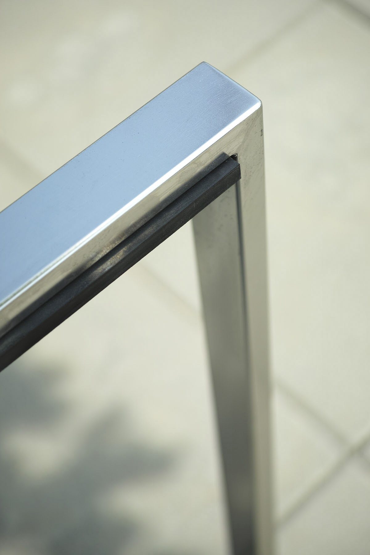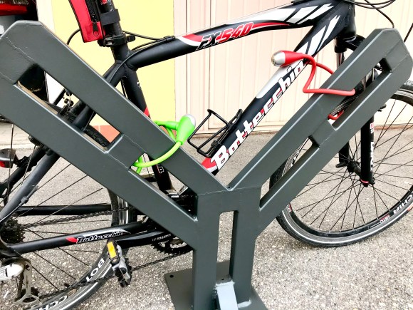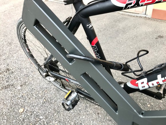L’elemento orizzontale superiore include una striscia di gomma che protegge la bici da graffi.
