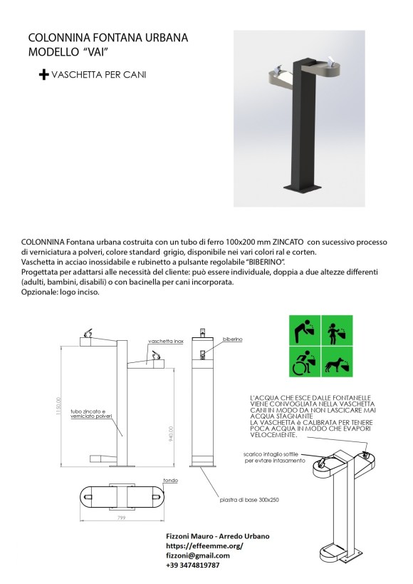 L’eventuale bacinella incorporata, raccoglie l’acqua per i cani. La calibratura della vaschetta la fa evaporare in fretta, in modo da non lasciare acqua stagnante.
