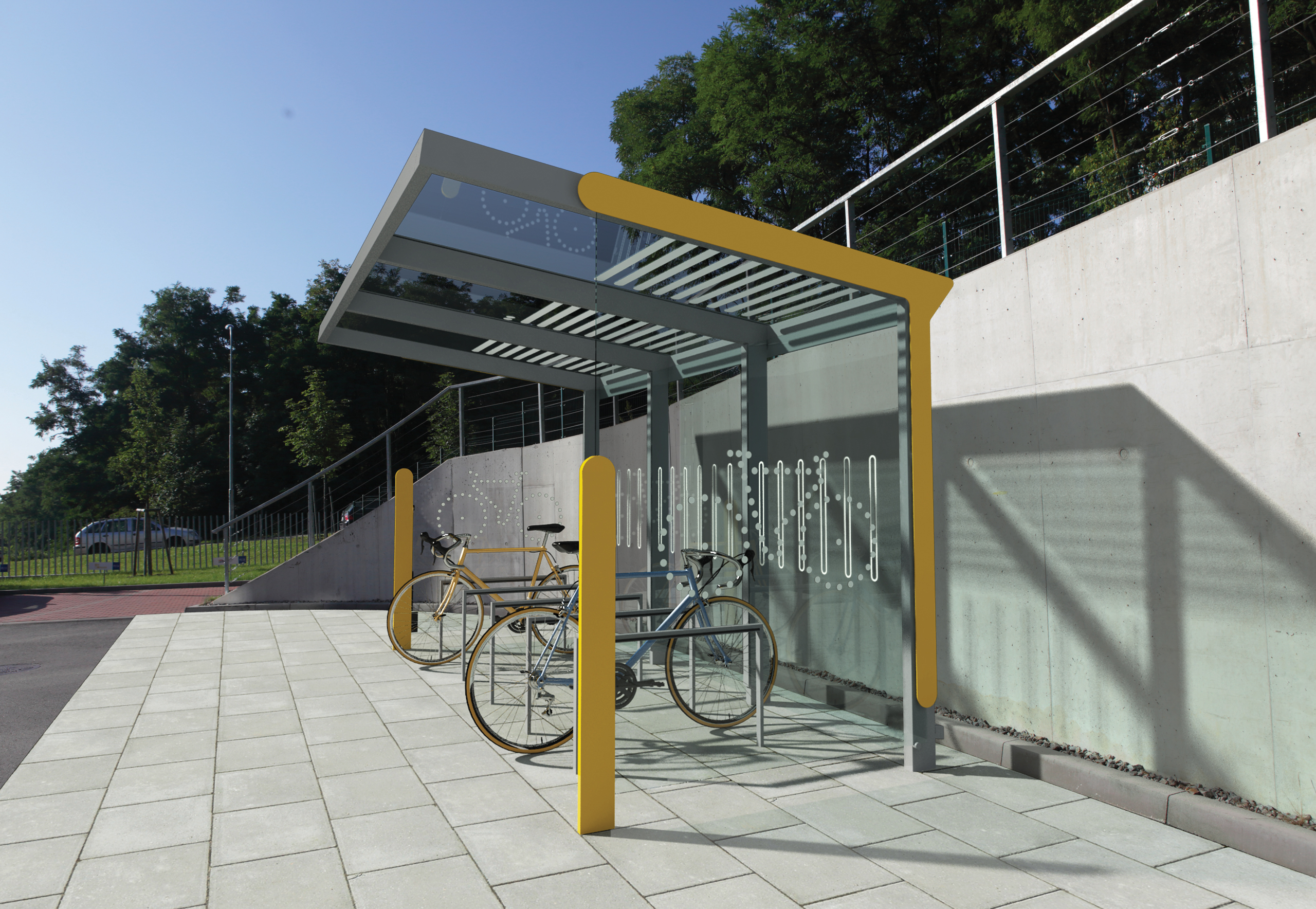 Aureo, una gamma di pensiline con due opzioni di copertura e un’ampia scelta di materiali che consente di scegliere l’opzione migliore per la zona d’istallazione. Un tetto arcuato o piatto, in policarbonato o vetro, copre la struttura in acciaio e presenta molti dettagli interessanti. Le colonne nella parete posteriore consentono la versione senza le pareti laterali, che è ben adatta per spazi stretti. Garantita elevata resistenza al vandalismo e alla corrosione.